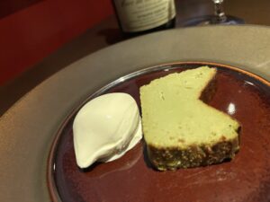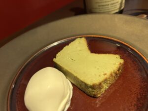はい、ピスタチオのチーズケーキいかがっすか~♪